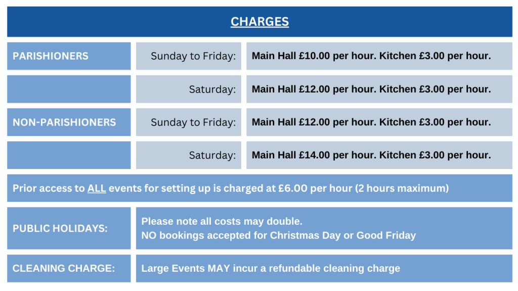 - NO BOUNCY CASTLES or similar inflatable equipment are permitted in the Village Hall.